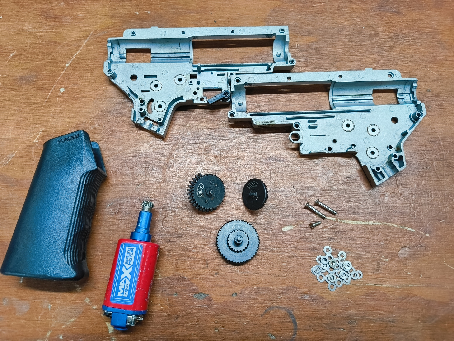 “[jouw merk] AEG gearbox disassembly” – the Tube is your friend. 😉