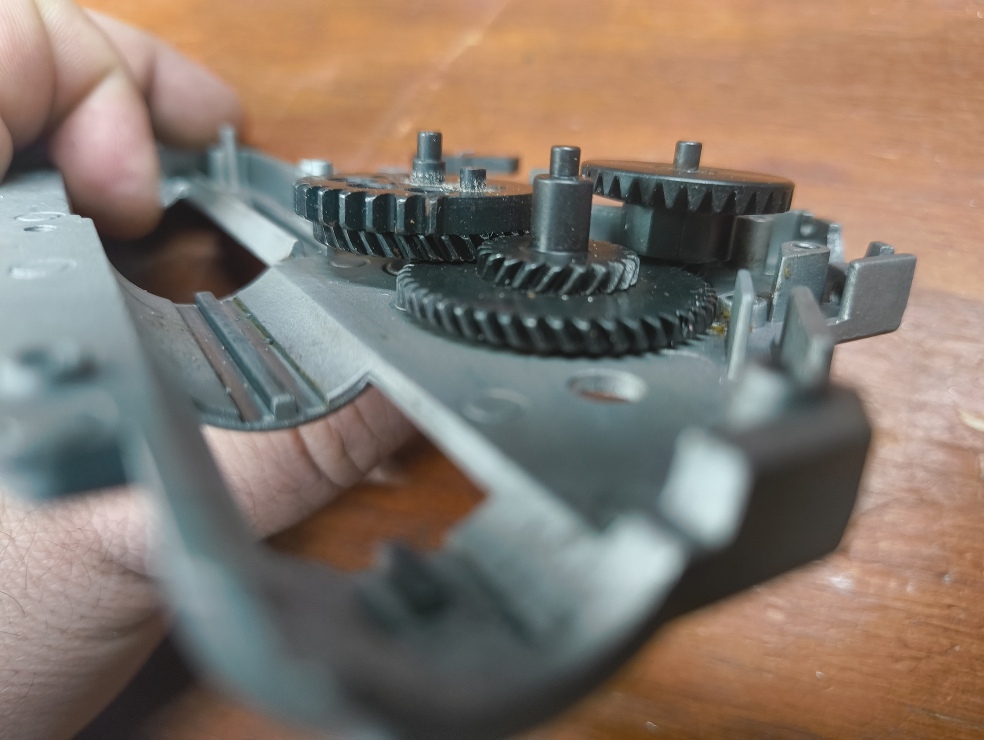 Duw met je vinger tegen de gears (via de opening waar je cilinder zat) en kijk of ze soepel en lang doordraaien.